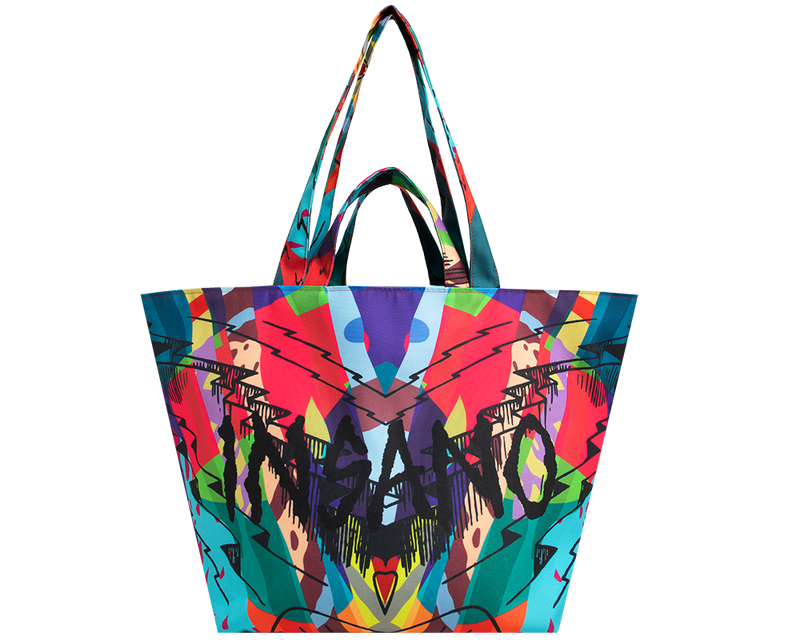 artwork by kaws. insano text by kid cudicustom oversized all over print tote with two...