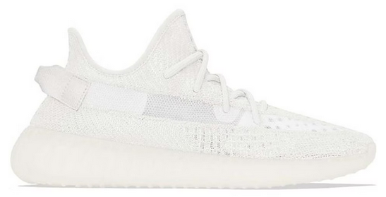 The adidas Yeezy Boost 350 V2 Bone features a triple white Primeknit upper with mesh...
