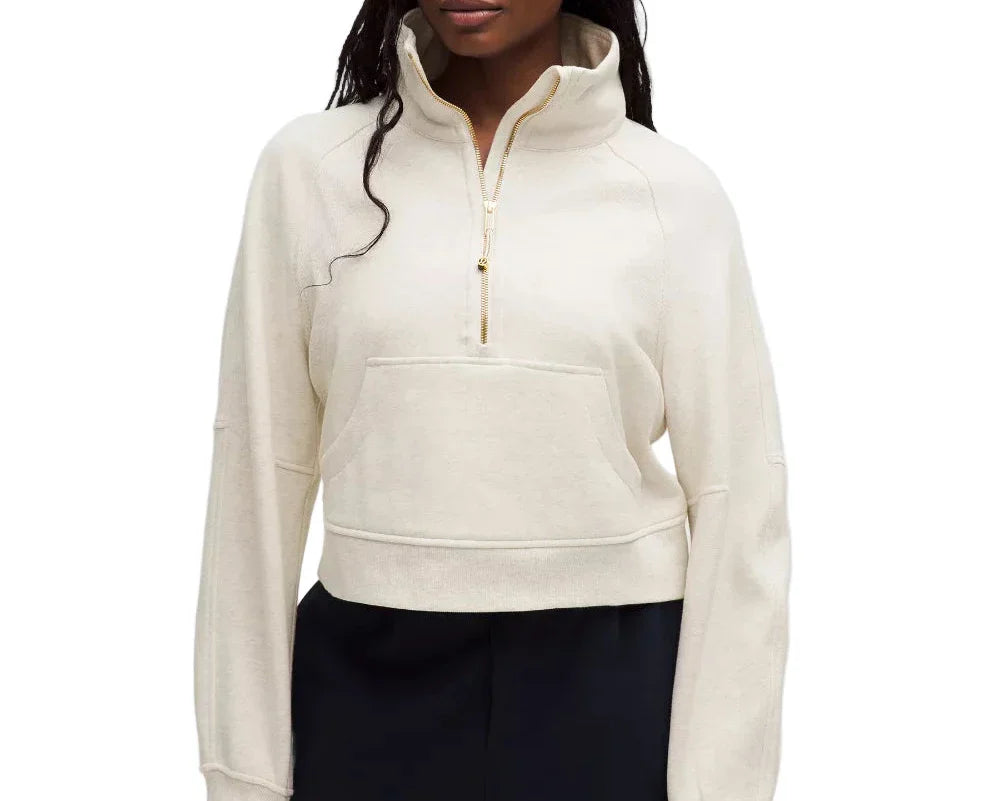 Scuba Oversized Funnel-Neck Half Zip Long DESIGNED FOR CASUAL Light Ivory Gold (Women’s)