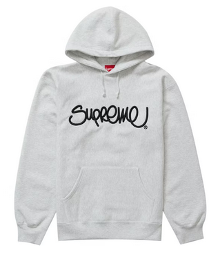Supreme Raised Handstyle Hooded Sweatshirt Ash Grey