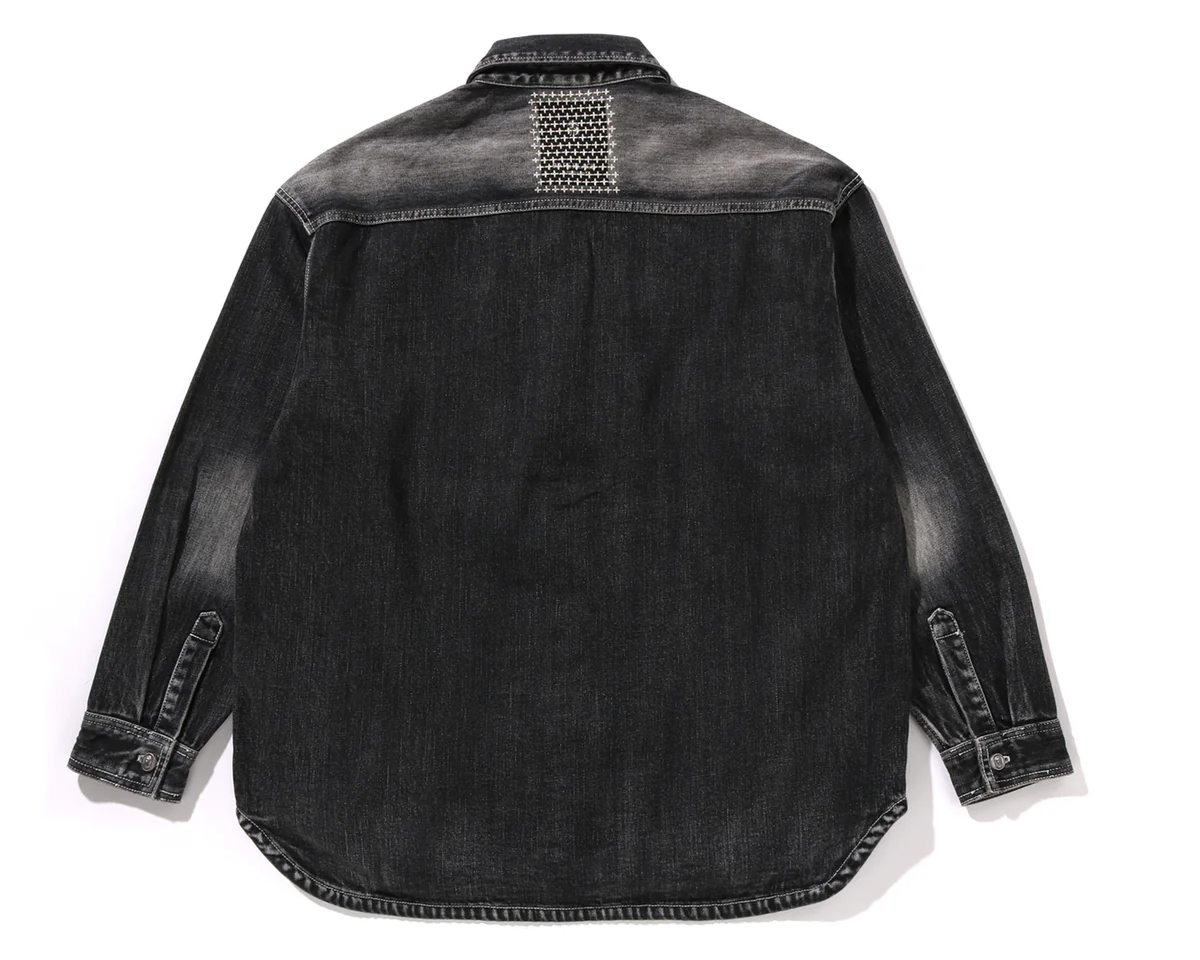 BAPE BLACK Men Long Sleeve Shirt Shashiko Patchwork Shirt