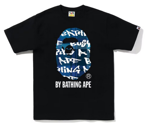BAPE Graffiti Check By Bathing Ape Tee Black Blue