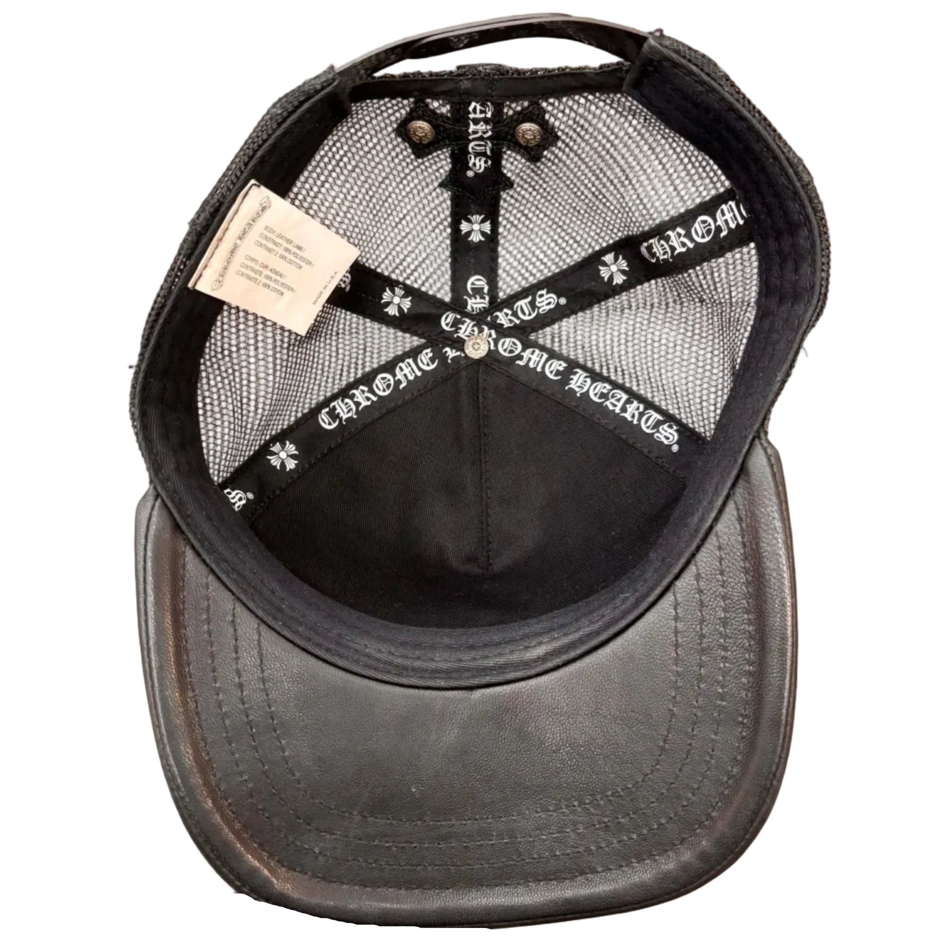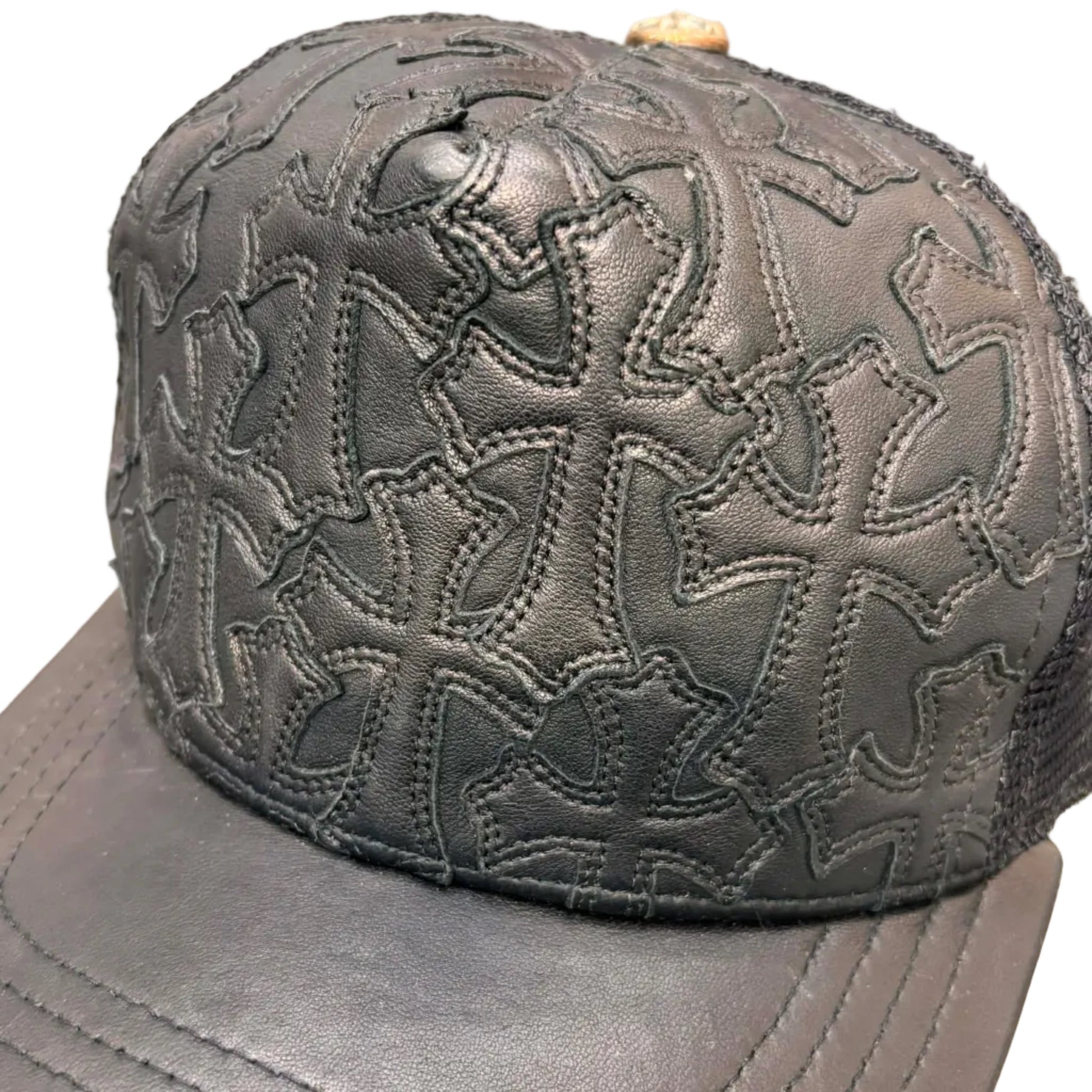 Chrome Hearts Cemetary Cross Leather Stitched Trucker Hat Black (Pre-owned)