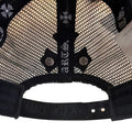 The Chrome Hearts Cemetary Cross Leather Stitched Trucker Hat Black embodies the label’s signature edge through detailed craftsmanship. The black base is elevated by leather stitched cemetary cross accents, adding texture and depth to the classic trucker silhouette. Structured panels and mesh backing maintain the familiar shape, while the intricate detailing reinforces Chrome Hearts’ luxury positioning.