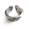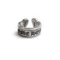 The scroll label ring features a bold and beautifully made “Chrome Hearts” lettering on top of a thick c-band type ring with straight edges. The feel of this ring’s large cold silver surface is a joy to silver jewelry lovers.