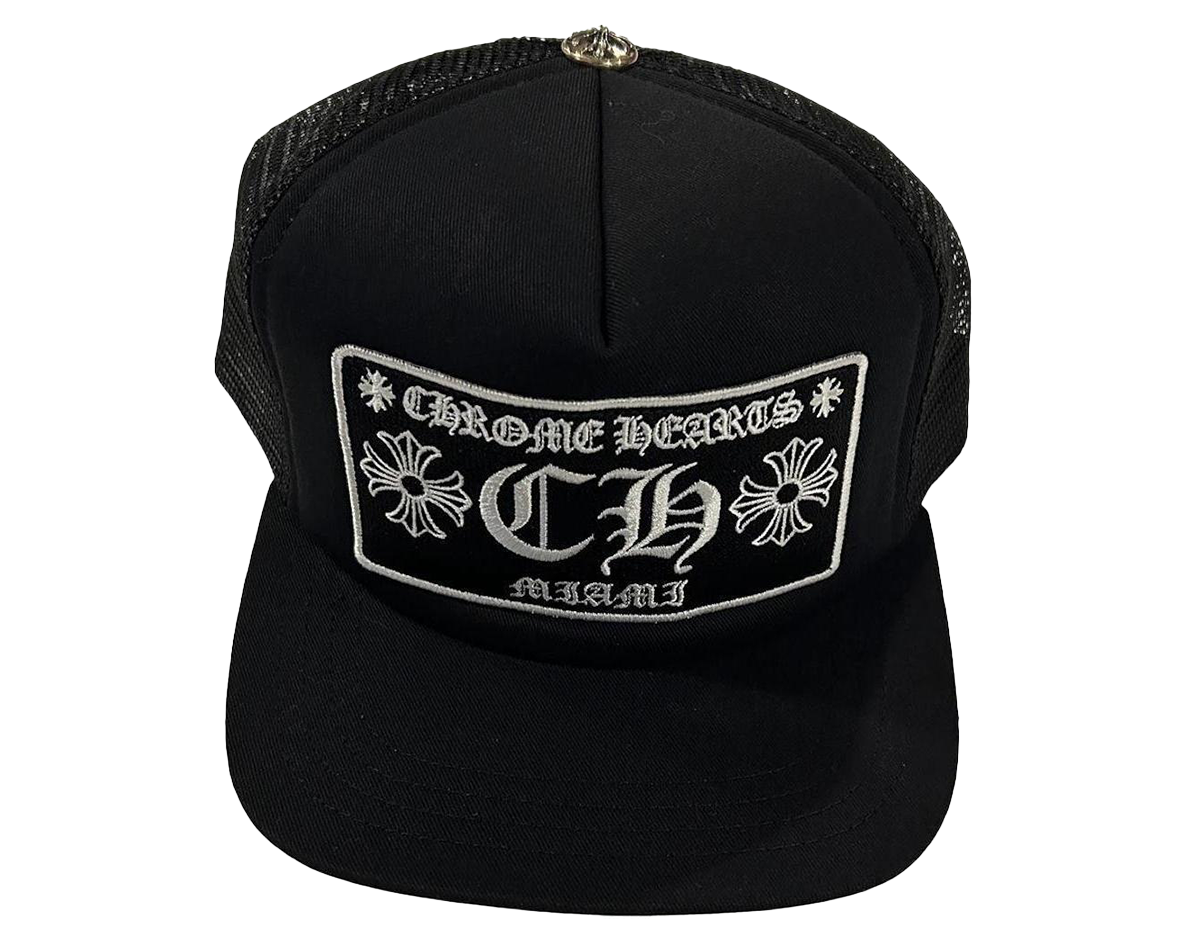 The Chrome Hearts Miami Exclusive Trucker Hat Black is a trucker hat released as part of the Miami Exclusive collection from Chrome Hearts.