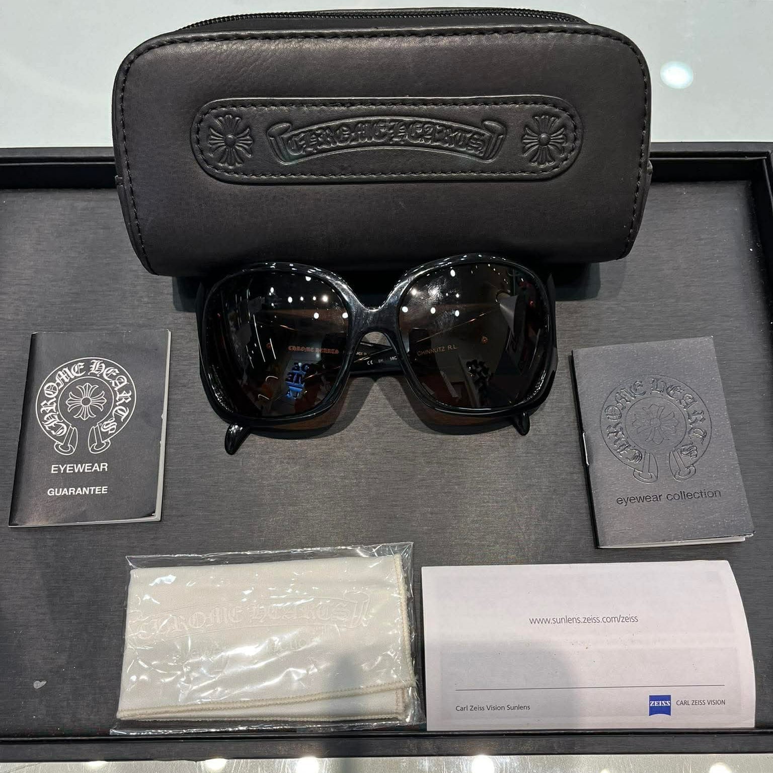 Chrome Hearts sunglasses DISFUNCTIONAL Black/Pink Leather Temple w/Case (Like new)