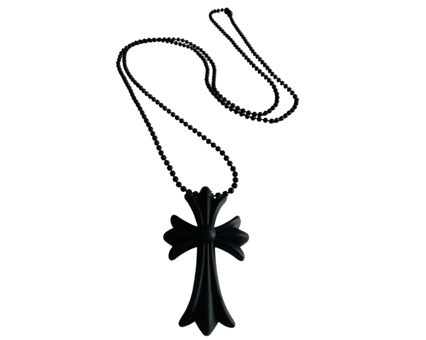 The centrepiece of the necklace is a silicone pendant with the distinctive Chrome Hearts logo, giving it a sleek and sophisticated touch. The use of silicone instead of a more rigid material such as leather or metal makes this necklace ideal for those looking for a lighter and more flexible piece, without losing the unique style that characterises the brand.