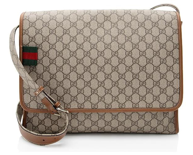 Gucci GG Supreme Web Flap Medium Messenger Brown (Pre-owned)