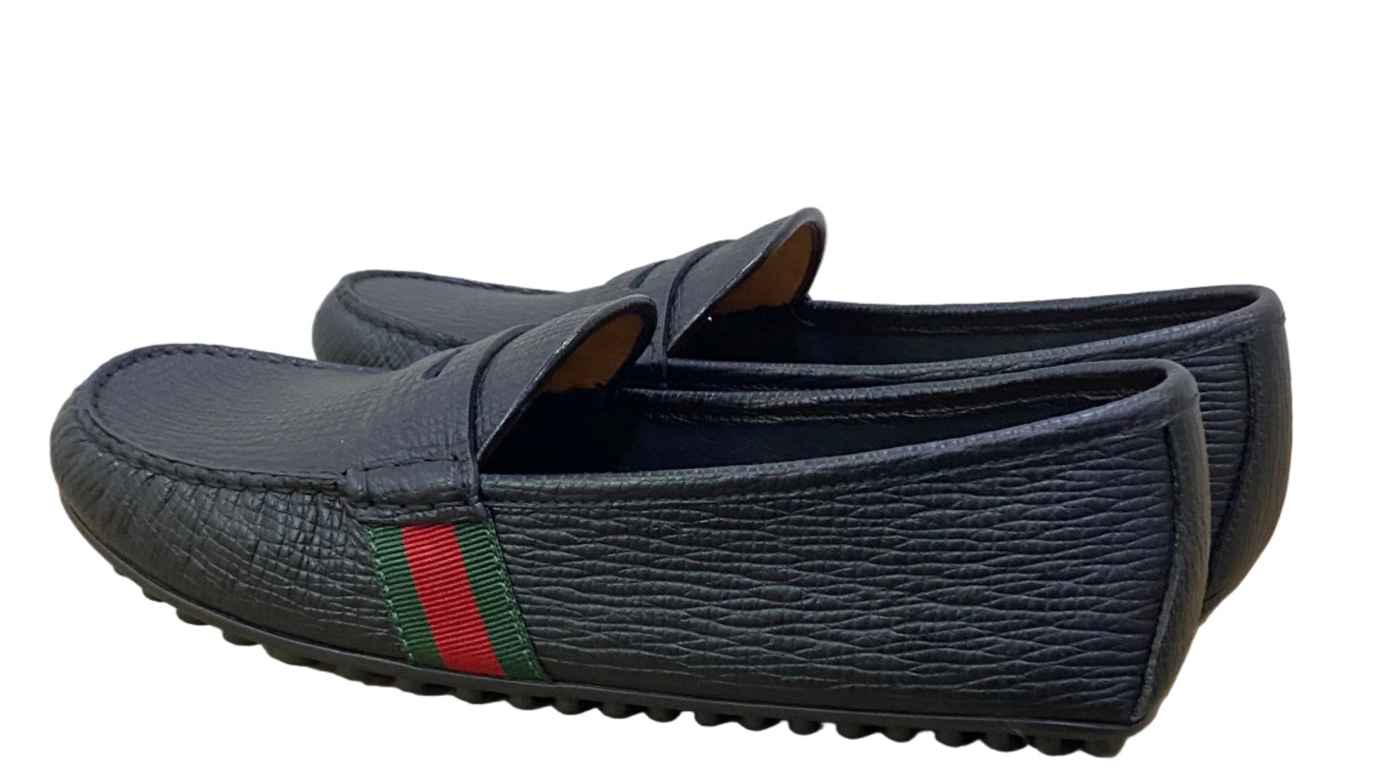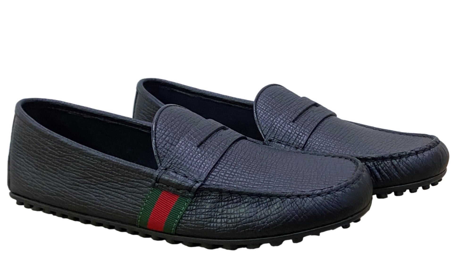 Gucci Men’s Black Leather Web Stripe Driver’s Loafers Black