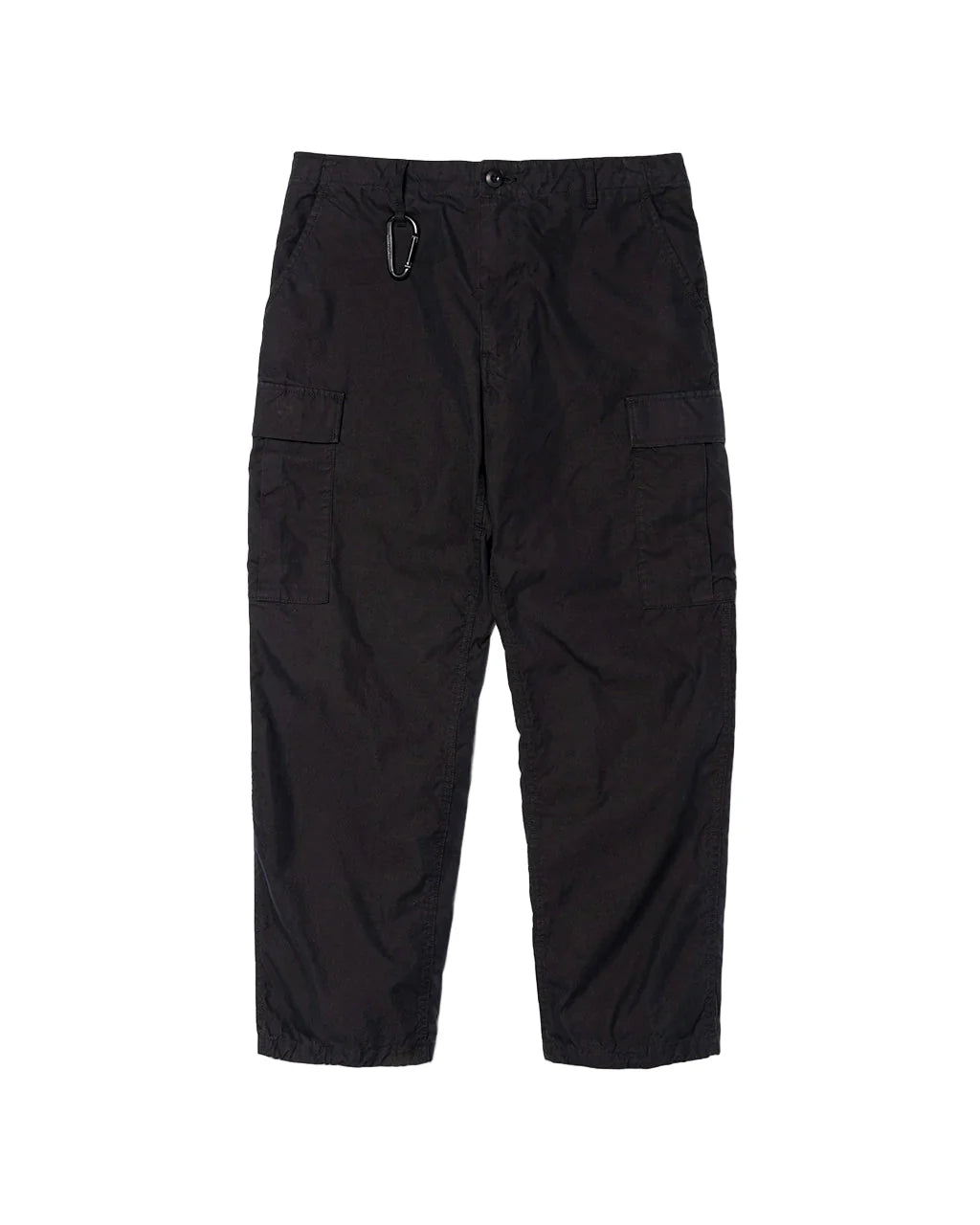 Cargo pants with attention to silhouette and detail. It also features a slightly softer fabric that has been washed. A carabiner is included.