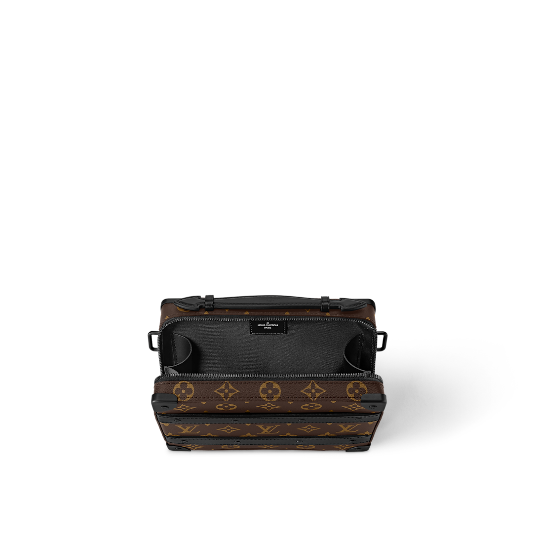 Crafted in Louis Vuitton’s emblematic Monogram Macassar canvas, the Handle Soft Trunk evokes the House’s heritage as a luggage maker with sophisticated details like the riveted corners and leather reinforcement strips. Its slim profile and removable strap make it effortless to carry, and it opens wide for easy access. Ideal for small digital devices and other personal essentials.