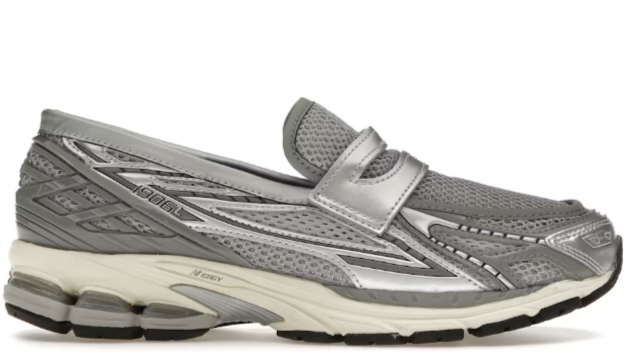 The New Balance 1906L Metallic Silver reimagines the 1906 as a slip-on loafer. This hybrid sneaker showcases a futuristic color palette of metallic silver and grey.