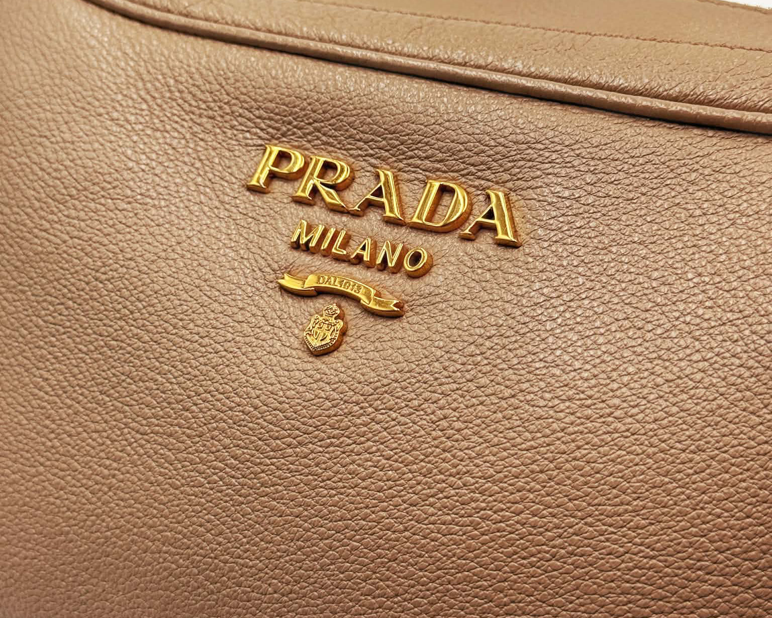 Prada Beige Vitello Daino Leather Double Zip Camera Crossbody Bag (Like new) Y3986RX