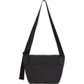 All cotton 13 oz. denim and water resistant Cordura® nylon with embossed logo lining. Main compartment with interior zip pocket. Velcro top flap with buckle closures and compression straps. Velcro pouch pocket at back. Adjustable webbing shoulder strap. Embossed logo at front with 3M® Reflective print. Woven logo label at lower front. 10.7" x 15" x 7.5". 11L.