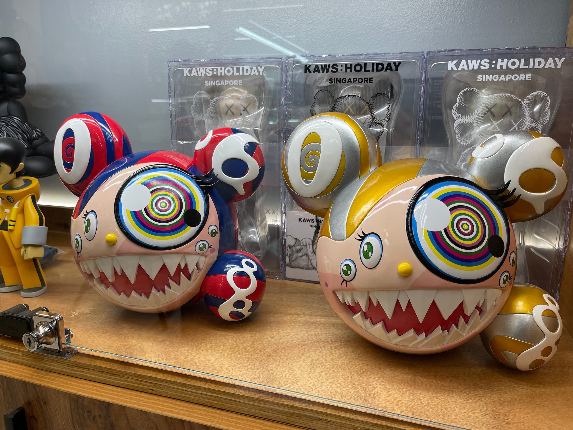 The Takashi Murakami Mr. Dob Figure is perhaps one of the most intriguing sculptures from the Japanese artist. The Mr. Dob figure showcases Takashi’s superflat theory of artistry in conjunction with a 3D, almost lifelike attribute. The figure includes some of Murakami’s most famous motifs, including a big mouth with sharp teeth, colorful eyes, and vibrant colors. The vinyl sculpture also has a shine to it, bringing to life Murakami’s traditional 2D figures.