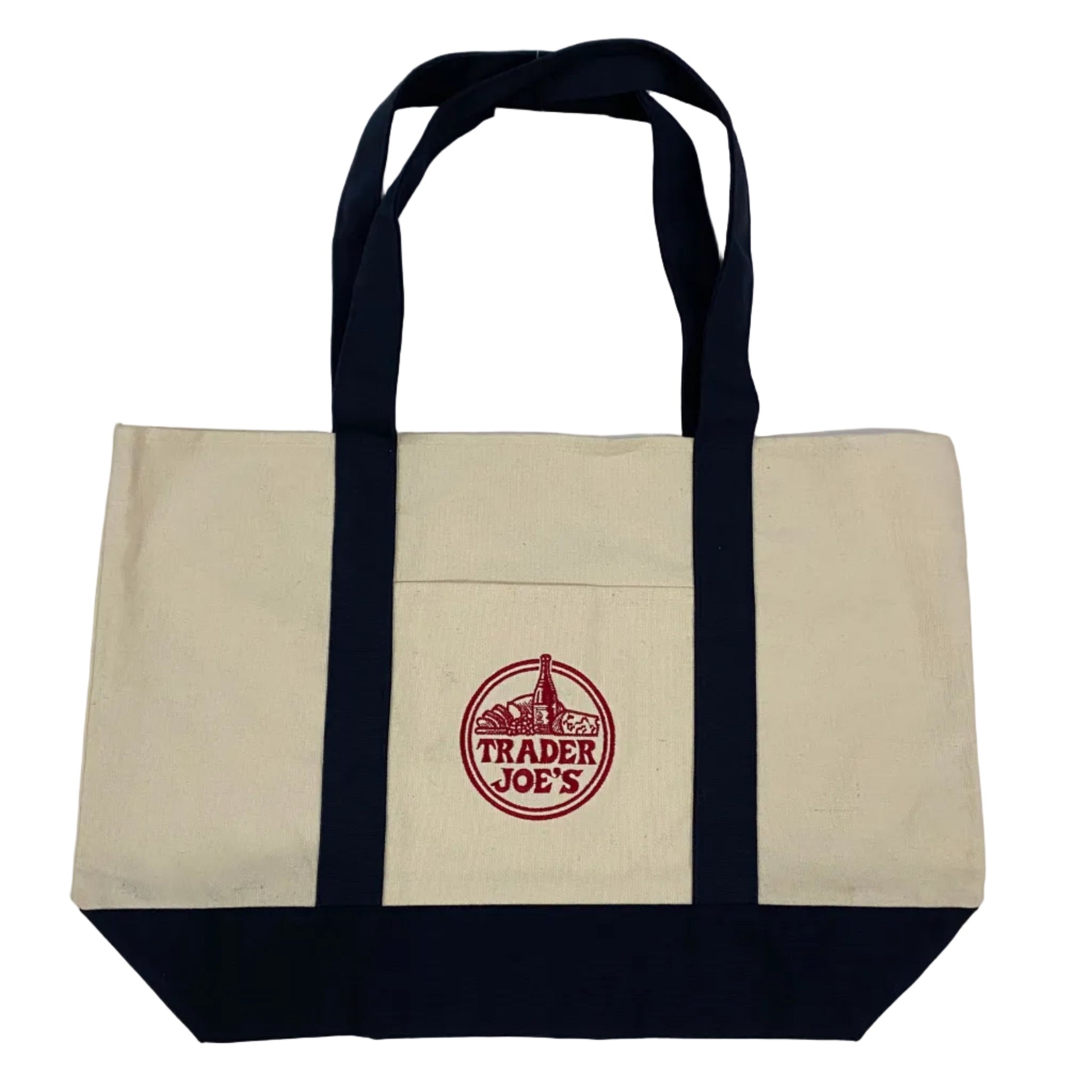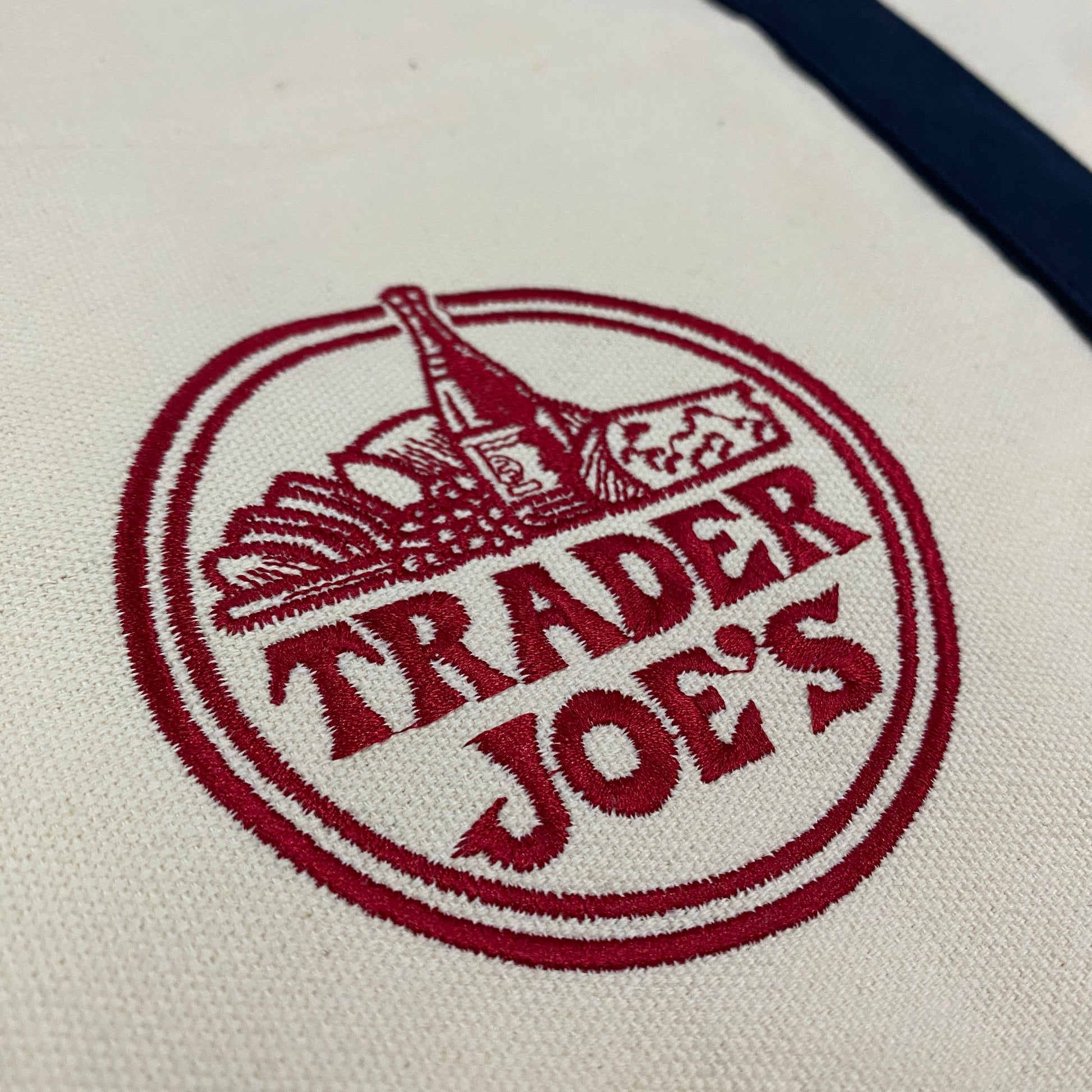 Trader Joes Large Tote Shopping Bag Cotton Canvas Embroidered Bag